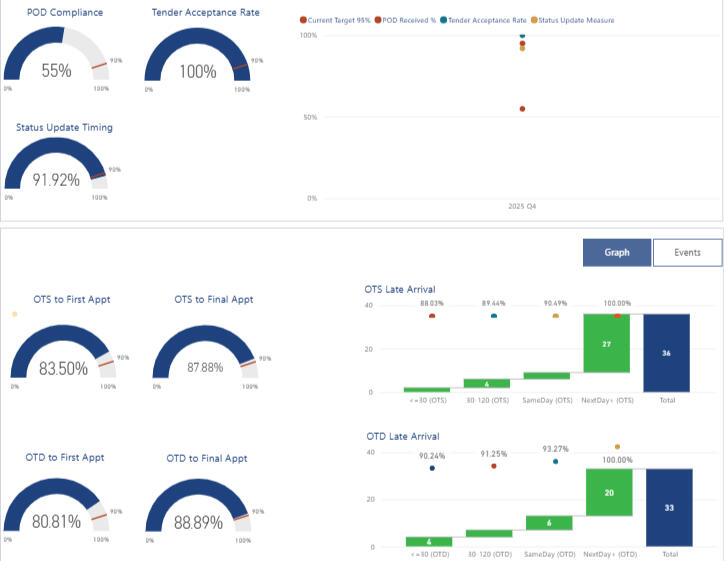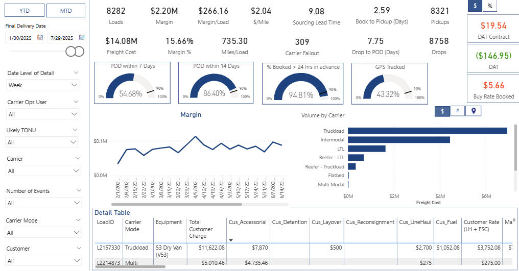 We focus on margin integrity, carrier behavior, and on-time performance